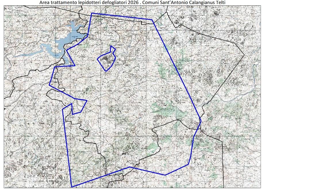L'AGRIS ha programmato l’esecuzione dell’intervento fitosanitario, da realizzarsi con l’impiego di mezzi aerei e con l’utilizzo del prodotto Foray Avio 76B a base di Bacillus thuringiensis, su una zona di circa 16.800 ha di sughereta ricadente nel territorio comunale che, in funzione delle condizioni meteorologiche e del ciclo vitale delle larve, verrà effettuata presumibilmente nel periodo intercorrente dall’ultima settimana di aprile fino alla fine del mese di maggio, nell’arco di circa 10/15 giorni. Si allega cartografia dell’area interessata dal trattamento.