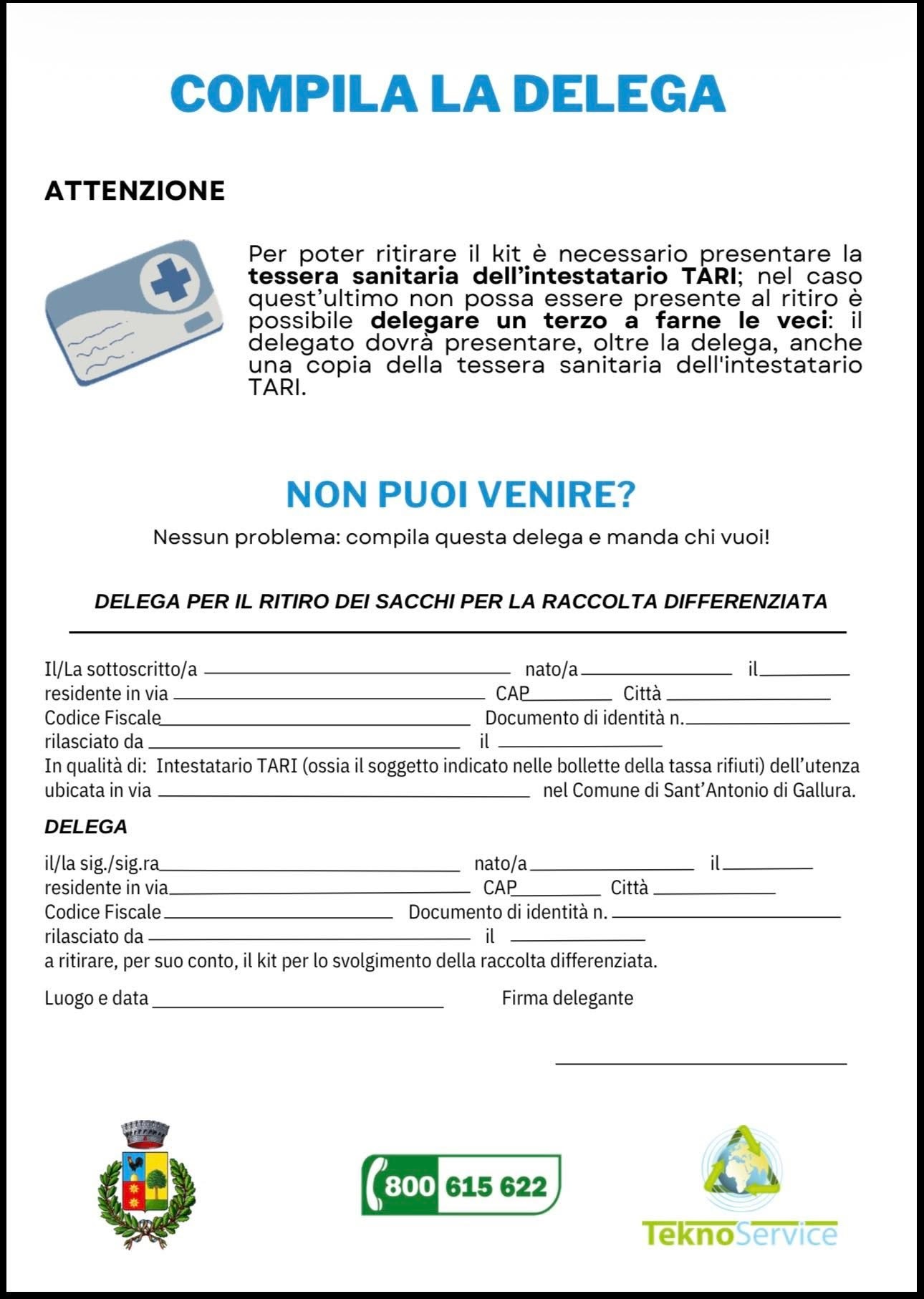 DISTRIBUZIONE SACCHI E CONSEGNA CALENDARIO