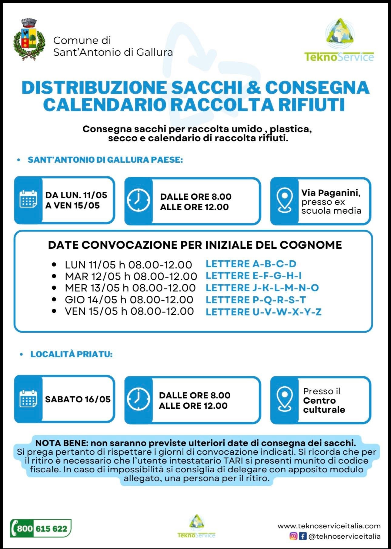 DISTRIBUZIONE SACCHI E CONSEGNA CALENDARIO